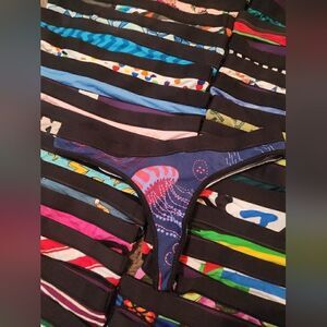 This lot will be a random selection of 4 brand new Thongs. No duplicates, you will receive a combination of patterns, solids, colors and themes. All vibrant! You will not be disappointed! Pictures are only part of the overall selection. Step up your underwear wardrobe!