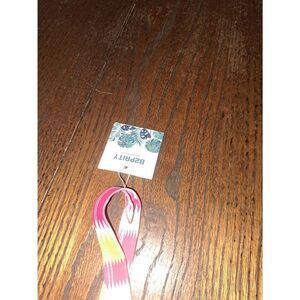 New With Tags Attached Women's Size Medium B2Prity Pink, White, and Yellow Keyhole Top Striped Padded (Removable), and Lined Swimsuit Bathing Suit Swimwear Bikini Top