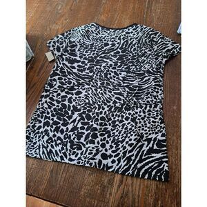 New Medium Bobby Brooks Black White Animal Print Short Sleeve Scrub Top Scrubs
