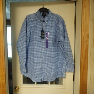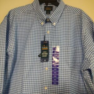 New with tag member's mark long sleeve stretch oxford shirt size men's XXL. It is light blue checked 26 inches across and 32 inches long.