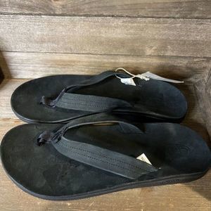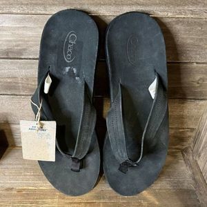New Mens Chaco Classic Leather Black Flip Flops Sandals Size 13 M NWT