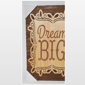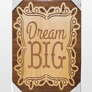 New Sign Of The Times Dream BIG brown & tan farmhouse distressed rectangle shaped décor hanger sign wood painted sign. Super cute! Never used! Features on a wood plank construction & attached back hanger. Approx. 13”L, .5”W, & 18”T. New with no traditional tags attached. Ask any questions before purchasing. Enjoy buying from an Ambassador II. Same or Next Day Shipping 🎁 Make an Offer or Bundle to Save 😊💕 🎁 All sales final & sold as is.