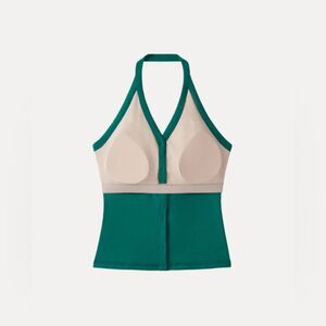 Retro charm with a modern twist. This halter top hits at the high hip and features a clean faux button placket for a touch of vintage-inspired detail. With removable bra pads included, it’s flattering, fuss-free, and effortlessly stylish.
