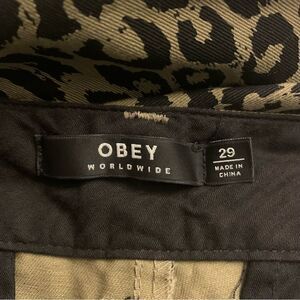 Obey leopard Casbah pants with button flap back pox and belt loops. Waist 29”, inseam 26” and rise 13”. Brand new with tags attached.
