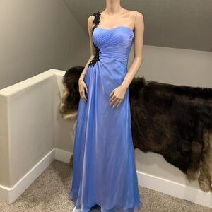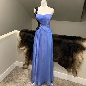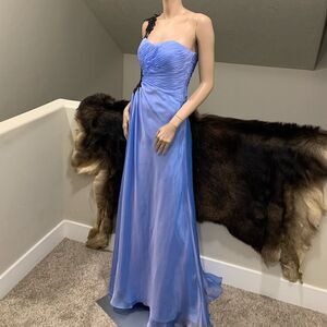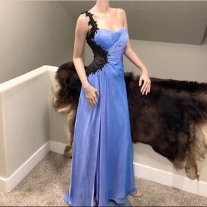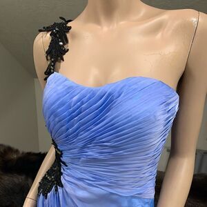 formal event. pleated at top. Appliqué embroidery and delicate beaded single shoulder strap. Sexy see-through