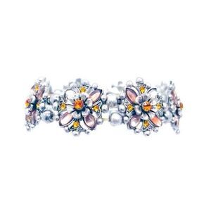 New Orange/Yellow Multicolor Crystal Silvertone Stretch Bracelet