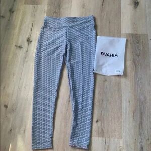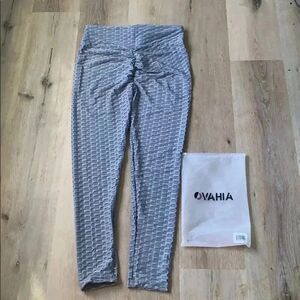 “Adopt a perfect curve with the Push Up/anti-cellulite Ovahia Leggings. Designed the Structura fiber, your belly is flatter, your waist is slimmer, your hips perfectly rounded and you get a butt plumpier than with a classic push up leggings. The breathable technological fabric will stimulate your body to help the circulation of water under your skin.”-their website