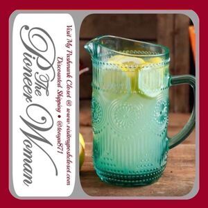 š¦ NWT The Pioneer Woman Adeline 54 oz Glass Water/Tea/Lemonade Pitcher, Turquoise Blue