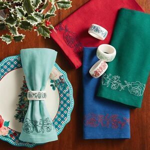 🦋 New Pioneer Woman Wishful Winter Napkins And Napkin Rings Set, Multicolor
