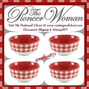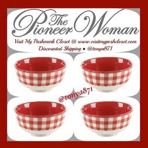 🦋 New Pioneer Woman Red Gingham Cereal Bowl, Qty 4