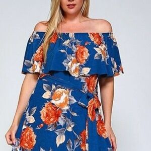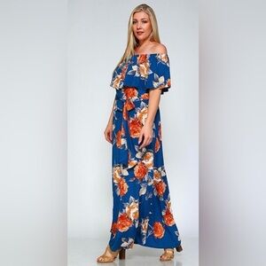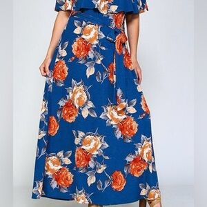 New!Plus Size Floral Off Shoulder Belted Maxi Dress Sizes 1X 2X 3X