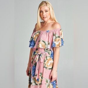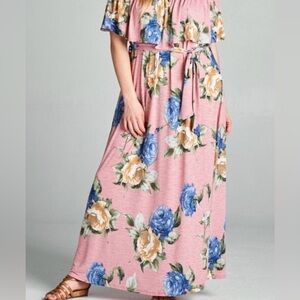 New!Plus Size Floral Off Shoulder Belted Maxi Dress Sizes 1X 2X 3X