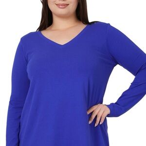 New!Plus Size Women's V-Neck Long Sleeve Top - Bright Blue Sizes 1X 2X 3X