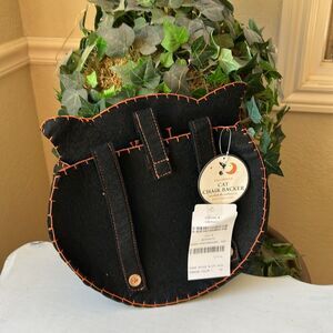 Charming black cat face design. Features orange and yellow accents. Perfect for your child treats. New