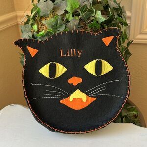 New Pottery Barn Kids Black Cat Face Chair Back Embroidered With Name Lilly