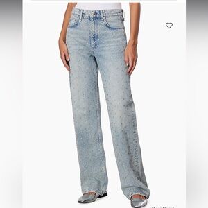 This full-length high-rise jean is designed with a relaxed, straight leg. Crafted from Lightweight Rigid non-stretch denim that provides structure, but breaks in over time for a soft and comfortable feel. In Desiree, a light indigo wash studded throughout with metal-rimmed faux pearls.