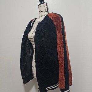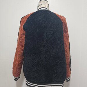 This beautiful unbranded fur coat is new without tag, of modern design/recent production (NOT a vintage one). Brand label and composition tag may be cut/removed per manufacturer requirement. Being made of merino sheepskin shearling and featuring a classic baseball jacket style, it offers perfect combination of style and functionality.