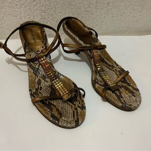 New Rebeca Sanver Women's Snakeskin animal print beaded sandals size 37