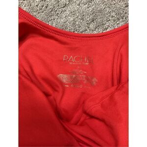 New. Rachel Roy red swimsuit with side ruffle. Low cut neck. Adjustable straps. Fully lined. New but lost its tags.
