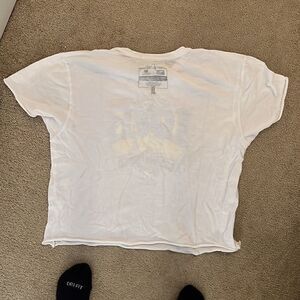 New graphic tee. No flaws super soft. Great for summer. Great with jeans or over a bikini or for back to school