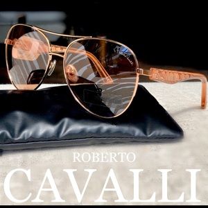 * Feature: Signature Roberto Cavalli logo on temples.