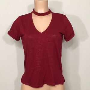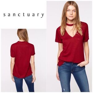 New. SANCTUARY choker cabernet linen T-shirt. NWOT