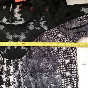 NEW! With Tag!Beautiful drawstring long sleeves, scoop neck, black/white lace - trimmed dress. Size M