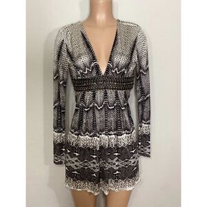 Long sleeve mini dress with back cut outs. Leather and chain laced belt. Beautiful high quality fabric and materials. This has a western flair.