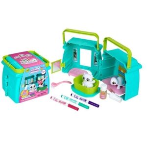 This super cute playset offers hours of imaginative play and encourages kids to expand Scribble Scrubbie playtime with sweet scented washable markers and spray. Kids can create custom colorful patterns on their pets with washable markers, then wash pets clean to create new patterns again and again. Scribble Scrubbie Pets are engaging, creative toys for girls and boys. The set doubles as a storage case with foldable handles.