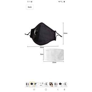 New With Tags Attached to Outer Plastic Unisex Set of 5 Face Masks Facial Coverings with Breathing Valve and Filters. Great for allergies, mowing grass, work, and for personal protection.