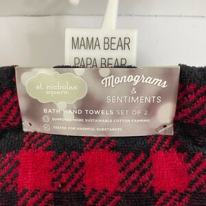 New!St.Nicholas Square| Set of 2| Hand Towel| Mama Bear and Papa bear| 100% Cotton| Christmas Towel