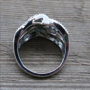 New Silver Blue Sapphire Braided Wide Band Ring