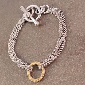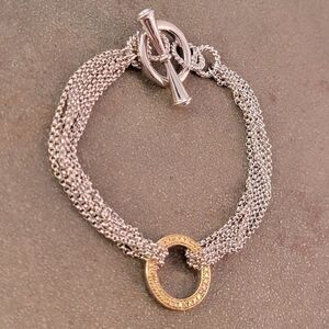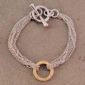 Sleek new without tags goldplated circle with multi silverplated chains toggle bracelet. This is a well-made fashion piece!