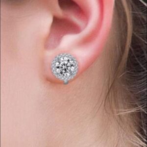 High quality Silver Plated 8mm Round Simulated Diamond Clip on Earrings
