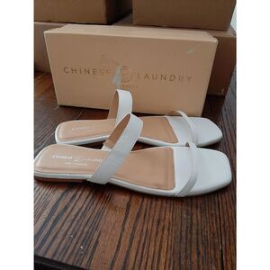 New, Never Worn, Damaged Box Women's Size 11 White Leather Chinese Laundry Deana Slides Sandals Summer Shoes