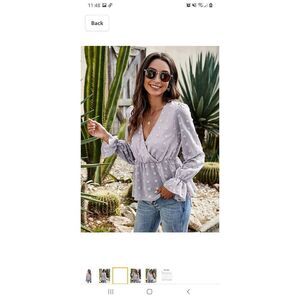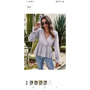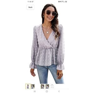 New With Tags Attached to Outer Plastic Women's Size Small Mauve Purple SheIn Women's Long Flounce Sleeve V-Neck Ruffle Hem Wrap Flared Blouse Top Shirt
