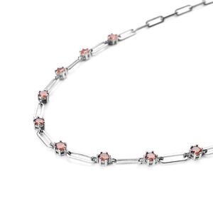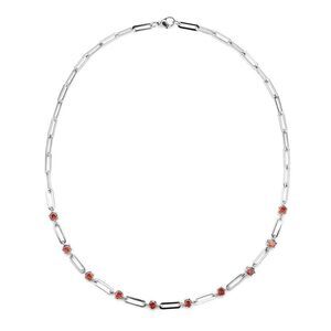 New, Stamped, Simulated Garnet Red Diamond, Paper Clip, Chain Station Neclace