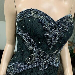 New Stunning Black Floral Lace Beaded Strapless Mermaid Gown