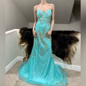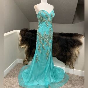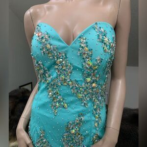New Stunning Strapless Heavily Jeweled Gown/All-over Crystal Beads and Sequins
