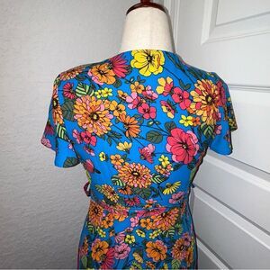 New, Sugarlips Twiggy Floral Lunar Print Full Wrap Short Sleeve Maxi Dress