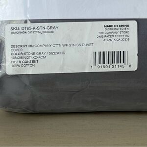 New The Company Store Stone Gray WrinkleFree Sateen King Duvet Cover 100% Cotton