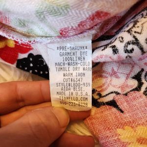 New Tianello Linen Floral Button Up Blouse Top