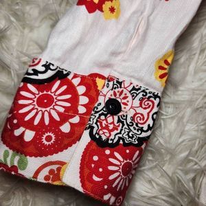 New Tianello Linen Floral Button Up Blouse Top Size Small Geometric Boho Pattern 3/4 Sleeve