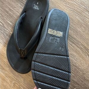 New Time & Tru MemoryFoam Black Flip Flops Sz 9