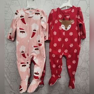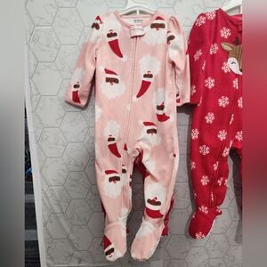 New Toddler girl's fleece Christmas footed pajama bundle