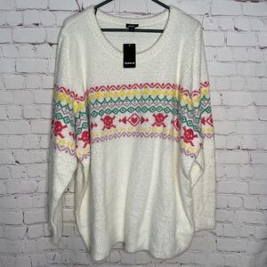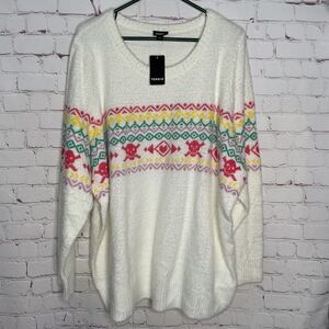 New Torrid Sweater Size 3X Fuzzy Yarn Crew Pullover Fair Isle Skull Pullover