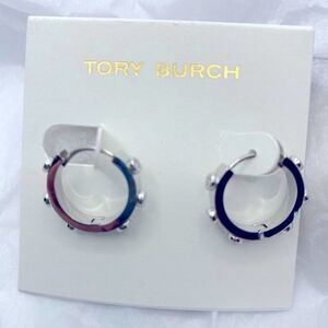 NewTory Burch Silver Small Raised Logo Hoop Earings