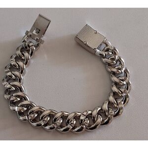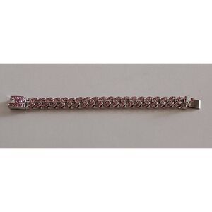 New~Trendy Goth Silver Bling Pink Pave Rhinestone Cuban Link Bracelet