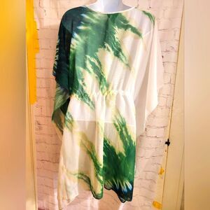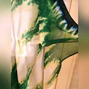 New Trina Turk Green/White Chiffon Watercolor Swim Coverup Sz.S Ret.$148