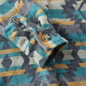 Mustard and turquoise Aztec pattern on a warm Flannel shirt/jacket. Oversized and button down.